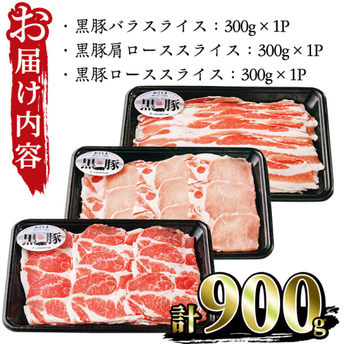 - No.473 (C-901)鹿児島黒豚しゃぶしゃぶセット(黒豚バラスライス・黒豚肩ローススライス・黒豚ローススライス各300g・計900g)【さつま日置農協】