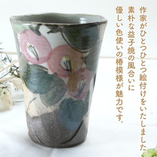 【益子焼】優しい風合いの椿模様フリーカップペア2個セット|カップ 椿模様 食器洗浄機可 電子レンジ可 オーブン可(BH001)