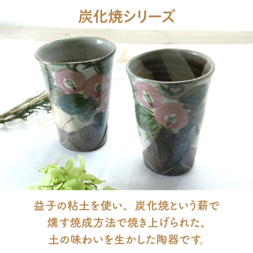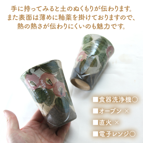 - 【益子焼】優しい風合いの椿模様フリーカップペア2個セット|カップ 椿模様 食器洗浄機可 電子レンジ可 オーブン可(BH001)