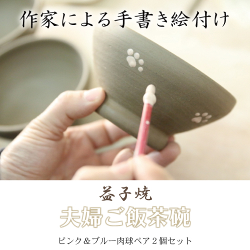 - 【益子焼】夫婦ご飯茶碗ピンク&ブルー肉球ペア2個セット|お茶碗 肉球 あめ釉 素朴 陶器 食器洗浄機可 電子レンジ可(BH002)