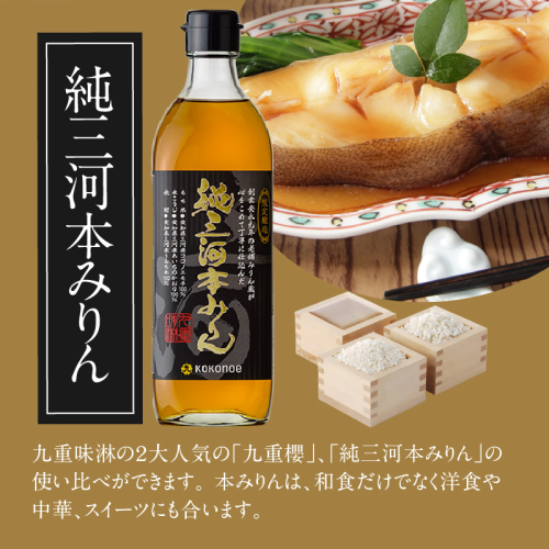 人気の「本みりん九重櫻」と「純三河本みりん」、「みりん屋さんのバームクーヘン」のセットです。