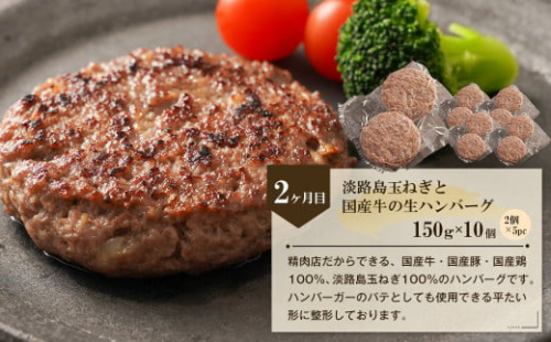 【2ヶ月目】淡路島玉ねぎと国産牛の生ハンバーグ150g×10個(2個×5PC)
