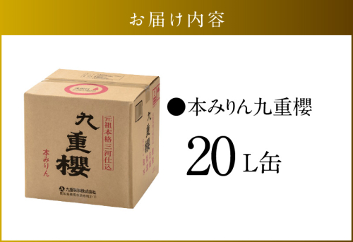 - 【業務用サイズ】本みりん九重櫻 20Lキュービテナー 三河みりん発祥の醸造元 九重味淋 醸造のまち碧南 みりん 三河 愛知県 調味料 H002-089