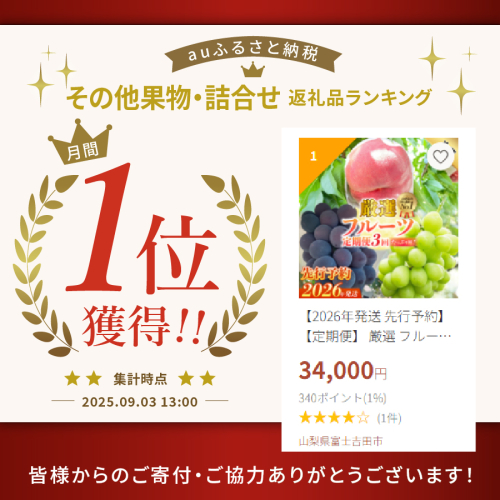 - 【2026年発送 先行予約】【定期便】 厳選 フルーツ3回定期便