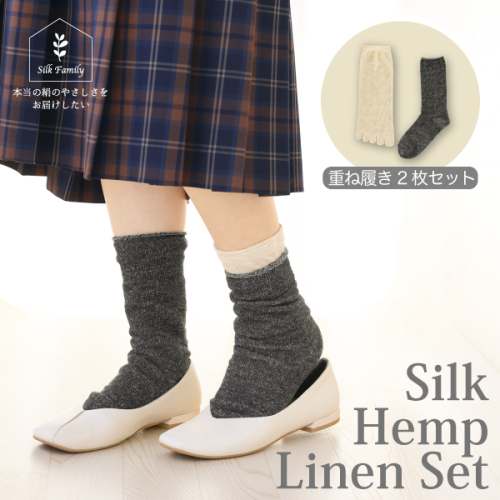重ね履きシルクヘンプリネン 2枚セット|靴下 くつした ソックス [2854-2859]