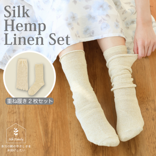 - 重ね履きシルクヘンプリネン 2枚セット|靴下 くつした ソックス [2854-2859]