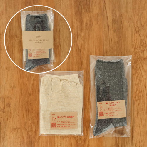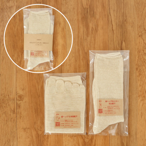 内側シルク、外側ヘンプの5本指靴下と先丸靴下のセットです。