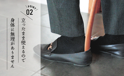 逗子で加工を施したキリガヤオリジナルデザインの木の靴べらです。温かみのある無垢の靴べらは、立ったまま使えるので身体に無理がありません。インテリアとしてもオシャレなチェリー色の国産アサダ材です。使い込むほどに味わいが増し、末永く使い続けたくなる一品です。