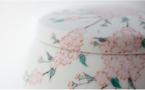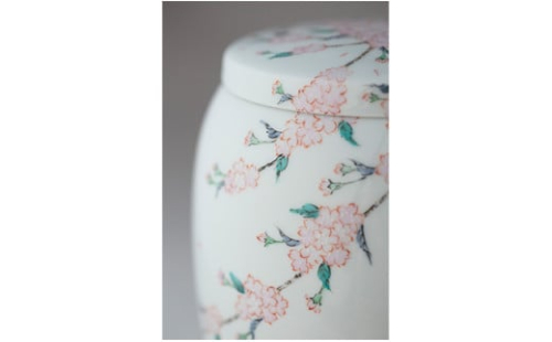 •  肥前赤絵窯元 鷹巣 桜花文様 御遺骨壺 骨つぼ 終活 こつつぼ 故人 供養 A800-28