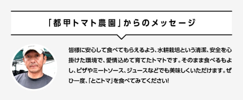「皆様に美味しく食べてもらいたい」そんな思いを込めて、箱に詰め込んだとこトマをぜひご賞味ください。