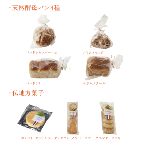 天然酵母パン4種 (パンドゥカンパーニュ、パンドゥミ、フリュイセック、セザムノワール)各1個