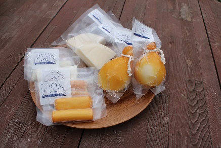 フレッシュ・ゴーダ:当工房では、熟成期間3~4月でミルクの柔らかさが感じられる若い味に仕上げました。 カチョカバロ:当工房では、十日ほど乾燥して燻製し、両面にしっかりと焦げ目をつけ中トロトロに焼いて召し上がれる、形のしっかりとしたものです。 ストリング(プレーン):当工房では、塩味控え目でしっかりと裂ける、形も良いものです。 ストリング(スモーク):プレーンを燻製したものです。