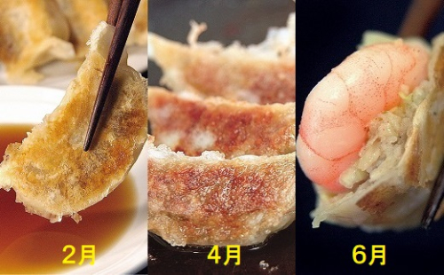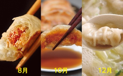 2月:山八餃子(16個入)×4P、特製たれ80cc×1本、柚子胡椒40g×1本