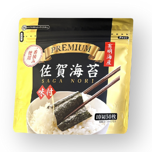 初摘み上級等級の贅沢な佐賀海苔を、海苔本来の旨みが引き立つ醤油ベースの味たれを用いて味付のりにしました!