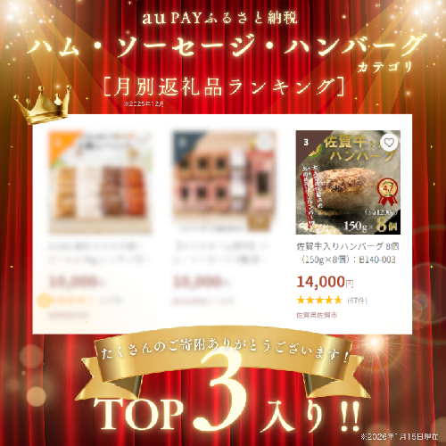- 佐賀牛入りハンバーグ 8個(150g×8個):B140-003