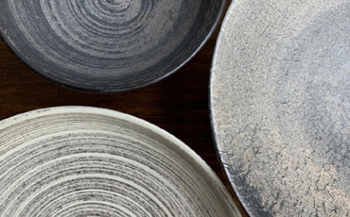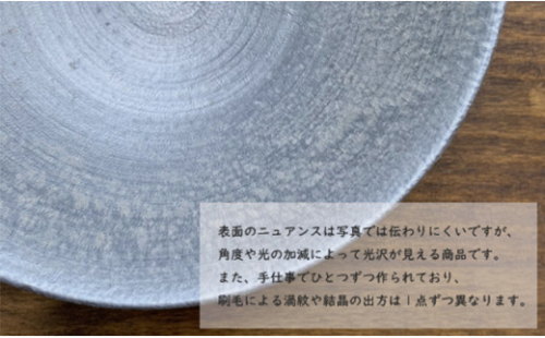 刷毛による渦紋や結晶の出方は1点ずつ異なり、大小さまざまです。