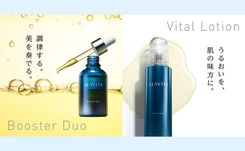 ■ALAVITA(アラヴィータ)について ALAVITA(アラヴィータ)は、静岡県・袋井市にて、独自の発酵技術により生産した5-ALA(アミノレブリン酸)というアミノ酸を配合したスキンケアシリーズです。 静岡県・袋井市にあるKIYAN PHARMAの工場では、医薬品・医薬中間体・5-ALA(アミノレブリン酸)などを生産しています。 アラヴィータは2018年でデビューしたスキンケアブランドで、KIYAN PHARMA開発の5-ALAを贅沢配合した、エイジングケアシリーズです。 代表的な商品である美容液「ブースターデュオ」は過去に6回、雑誌等でベストコスメに選ばれるなど、美容家やライターを中心に注目を集めています。 ■セット内容について アラヴィータを代表するスキンケア商品3品(美容液、化粧水、クリーム)を2か月お使いいただける特別なセットです。
