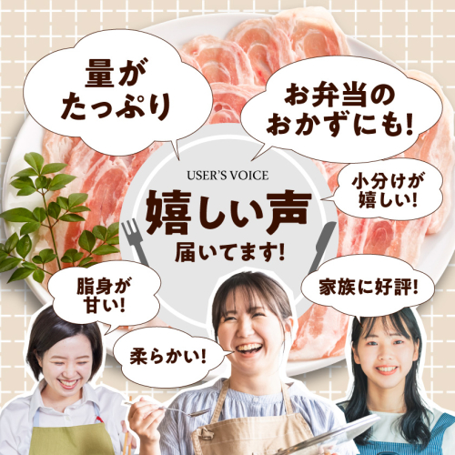 小分けになっていてとても使いやすいです。しゃぶしゃぶ用とありますが正直鍋にすると少し硬く豚の旨みはあまり感じられませんでした。焼きで食べると美味しかったです。我が家は炒め物にもしゃぶしゃぶ用肉を使うのでこの量はとても嬉しいです。またリピートします。