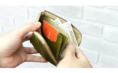 栃木レザーで造りあげたシンプルな本革薄型ミニ財布。