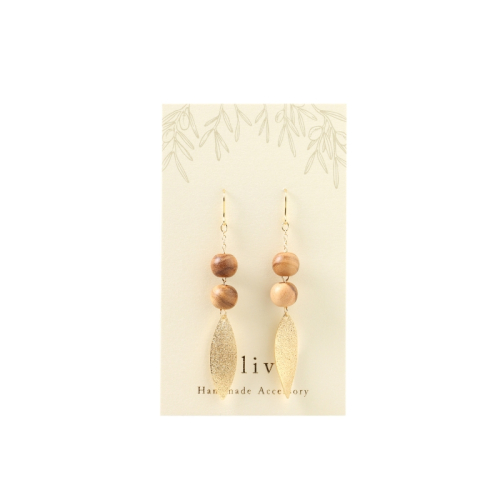 • 【 小豆島 】オリーヴの森 オリーヴウッドアクセサリー ピアス「葉」 オリジナル