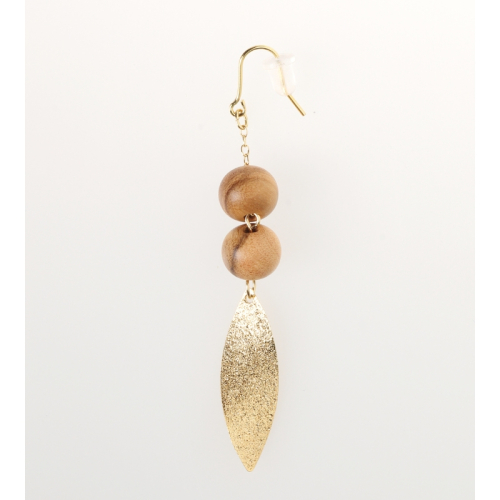 樹齢300年以上のチュニジアのオリーヴの古木を日本に持ち帰り、球状に加工しました。 オリーヴ球はそれぞれ木目が異なり、個性豊かなデザインです。 そのオリーヴ球を弊社の社員が「オリーヴの葉」をイメージして作成したピアスです。 同じものは2つとないオリジナルのハンドメイドアクセサリーです。 オリジナルHandmade Accessoryです。