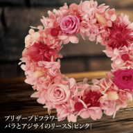 プリザーブのバラ、アジサイをメインにアートフラワーも入ります。
