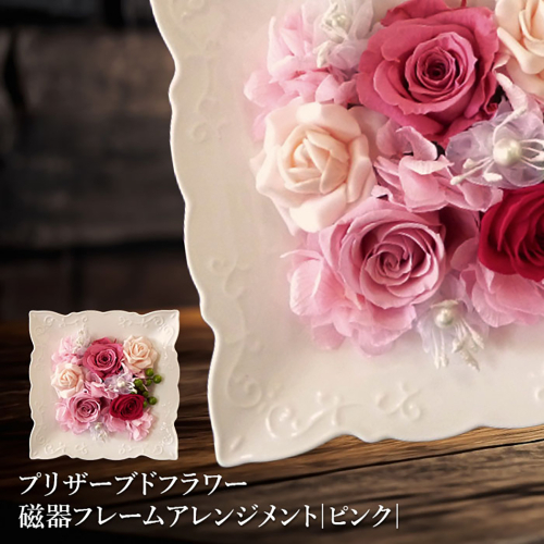 プリザーブドフラワー 磁器フレームアレンジメント(ピンク)【14000201】