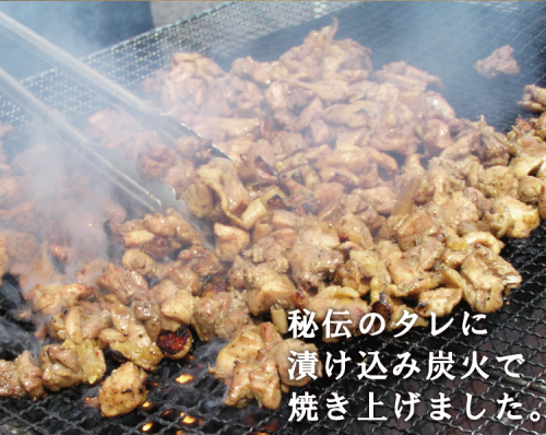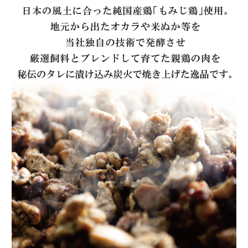 日本の風土に合った純国産鶏「もみじ鶏」使用。地元から出たオカラや米ぬか等を当社独自の技術で発酵させ、厳選飼料とブレンドして育てた親鶏の肉を、秘伝のタレに漬け込み炭火で焼き上げた逸品です。