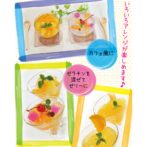 果実のつぶつぶがたっぷり詰まったドリンクとフルーツ缶詰のセットをお届け