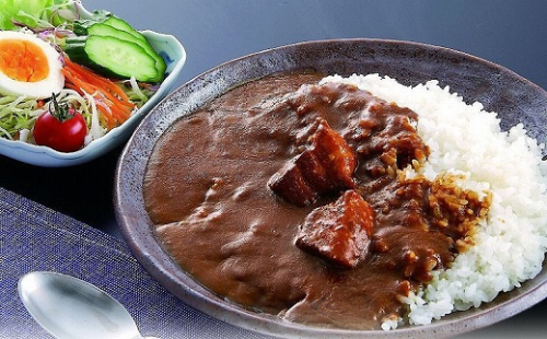 長崎名物・角煮を入れ、伝統ある長崎の島原麦みそ仕立てで作ったコクと深みのあるカレーです。