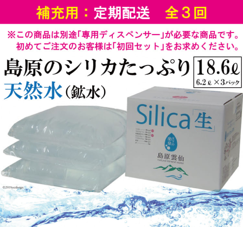 AD122(補充用・定期配送全3回)島原のシリカたっぷり天然水18.6L(6.2L×3パック)×3回 77761 - 長崎県島原市