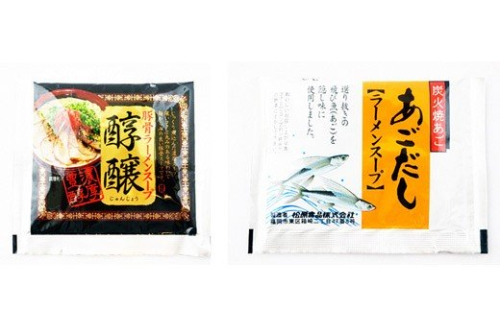 スープは長崎特産の飛魚を使った上品な「あごだし」と、当店一番人気の久留米系濃厚とんこつスープ「醇醸」の二種類をご用意しました。