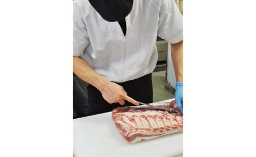 手作りパンチェッタは、厳選した国産豚肉のバラの、厚みのあるところのみ使用しています。