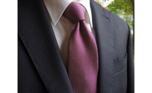 高密度に織り上げた、複雑な規格の絹織物を使う男性向けのネクタイと、