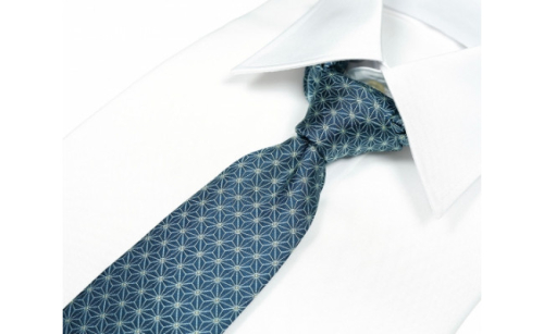 • 郡内織物「富士桜工房」シルクネクタイ 麻の葉 青碧 FAA1019