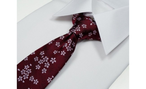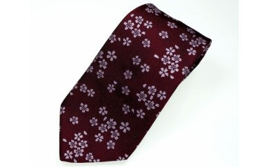 • 郡内織物「富士桜工房」シルクネクタイ 桜花 臙脂色 FAA1063