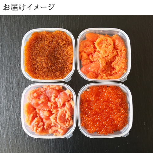 2957. 魚卵 食べ比べ 4種 計600g 鱈子 明太子 いくら とびっこ 送料無料 北海道 弟子屈町