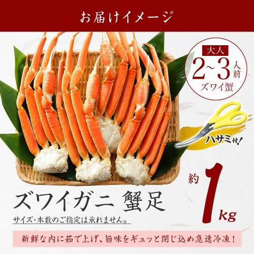 - 【年内配送 12月21日まで受付】3355. ボイルズワイガニ足 1kg 約2-3人前 食べ方ガイド・専用ハサミ付 カニ かに 蟹 送料無料 期間限定 数量限定 北海道 弟子屈町