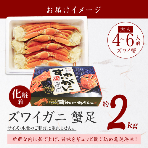 3173. ボイルズワイガニ足 2kg 食べ方ガイド付 ギフト箱 カニ かに 蟹 ズワイガニ ずわいがに ズワイ ずわい 蟹足 カニ足 かに足 期間限定 数量限定 北海道 弟子屈町