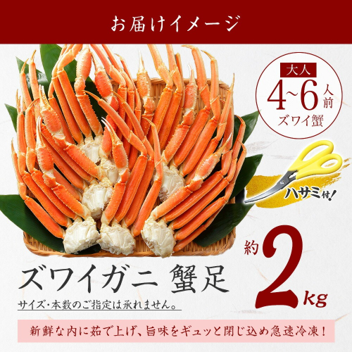 - 3331. ボイルズワイガニ足 2kg 約4-6人前 食べ方ガイド・専用ハサミ付 カニ かに 蟹 送料無料 期間限定 数量限定 北海道 弟子屈町