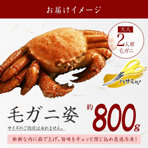 3302. ボイル毛蟹姿 800g 食べ方ガイド・専用ハサミ付 カニ かに 送料無料 北海道 弟子屈町