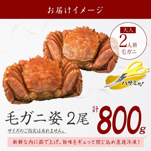 - 3357. 毛蟹 2尾 計800g前後 食べ方ガイド・専用ハサミ付 カニ かに 蟹 海鮮 ボイル 送料無料 北海道 弟子屈町