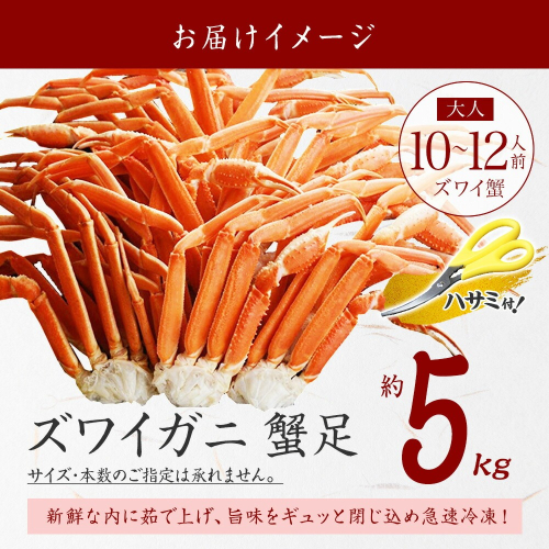3376. ボイルズワイガニ足 5kg 約10-12人前 食べ方ガイド・専用ハサミ付 カニ かに 蟹 送料無料 期間限定 数量限定 北海道 弟子屈町