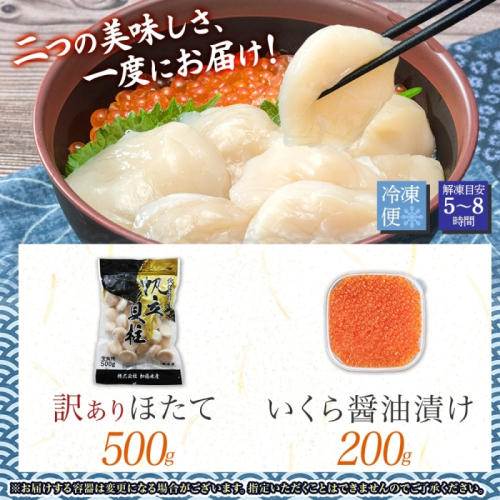 3586. 訳あり ホタテ 500g いくら 醤油漬け ほたて イクラ 帆立 生ほたて 貝柱 送料無料 北海道 弟子屈町