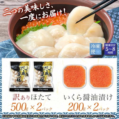 3587. 訳あり ホタテ 1kg ほたて いくら 醤油漬け 400g 帆立 貝柱 送料無料 北海道 弟子屈町