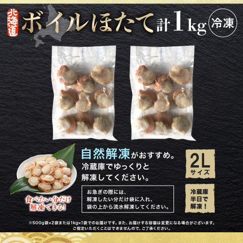 - 3368.ボイル ほたて 1kg ホタテ 2Lサイズ 大粒 帆立 魚介 海鮮 貝 お取り寄せ グルメ 贈り物 冷凍 送料無料 北海道 弟子屈町