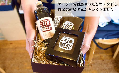 『珈琲時間』ギフトセットはまめやかふぇのこだわりが詰まった人気商品です。ドリップバッグとカフェオレベースともにブラジル契約農園の豆をブレンドし自家焙煎珈琲豆からつくりました。ドリップバッグは、大人気の『まめやブレンド』を簡単でお手軽なドリップバッグにしました。難しい器具などは何も必要ありません。開封してカップに乗せてお湯を注ぐだけで簡単においしいコーヒーができあがります。ご自宅で!旅行へ!アウトドアでも!たった1分で本格的なプロの味わいがお楽しみいただけます。カフェオレベースは袋井を代表するお土産品として、袋井商工会議所の推奨品プレミアム商品に認定されました。牛乳または豆乳でお好みの濃さ(約4倍程度)に薄めてお飲みください。ホットでもアイスでもおいしくお飲みいただけます。お湯で割るとホットコーヒー、水と氷で割るとアイスコーヒーも簡単にできあがります。
