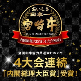 「宮崎牛」は全国和牛能力共進会において4大会連続「内閣総理大臣賞」を受賞しました。