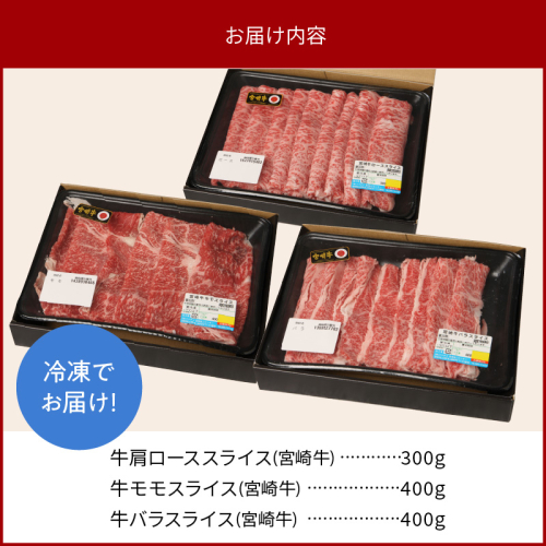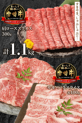 宮崎牛肩ローススライス300g モモスライス400g バラスライス400g 計1.1kg N0147-YC235