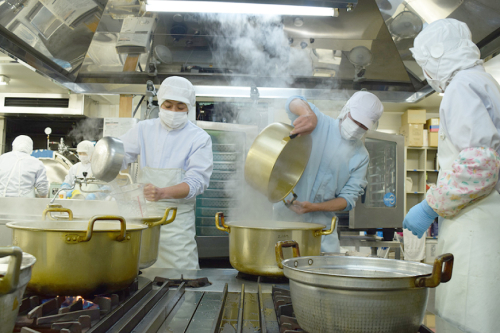 写真のような鍋で炊き上げていくのですが、炊き上がりのタイミングは工場が良い匂いで満たされます。